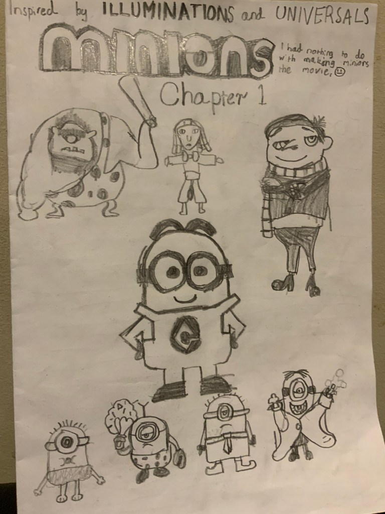 Here is my first picture in my blog, I drew this picture about minions because I like Movies and drawing and a Movie we have been watching recently is “Minions” so I decided to draw a picture about it.